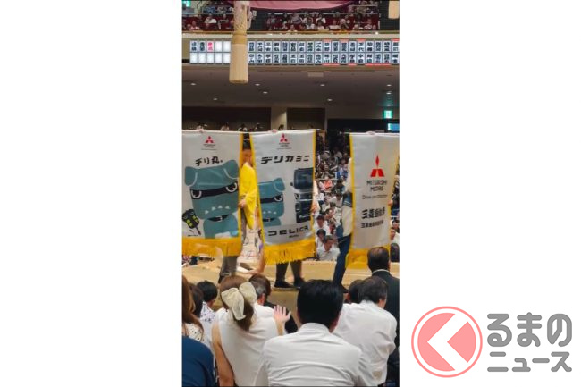両国国技館で開催中の大相撲9月場所で、三菱「デリカミニ」のキャラクター「デリ丸。」の懸賞旗が掲げられています。SNSや会場では「いいですね」「可愛い」といった反響が寄せられました。なぜ「デリ丸。」の懸賞旗が誕生することになったのでしょうか。