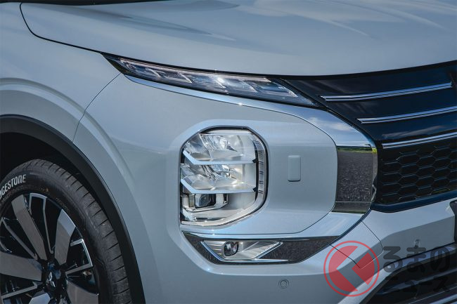 約530万円! 三菱「新“7人乗り”SUV」! 高性能4WDの「主力モデル」! 大盾顔も超カッコイイ「アウトランダー」が販売店でも話題に