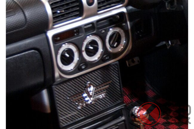 インテリアも鮮やかな配色を採用し、茶色のレザーシートや、赤と黒のチェック柄フロアマットが、スポーティな雰囲気を演出。