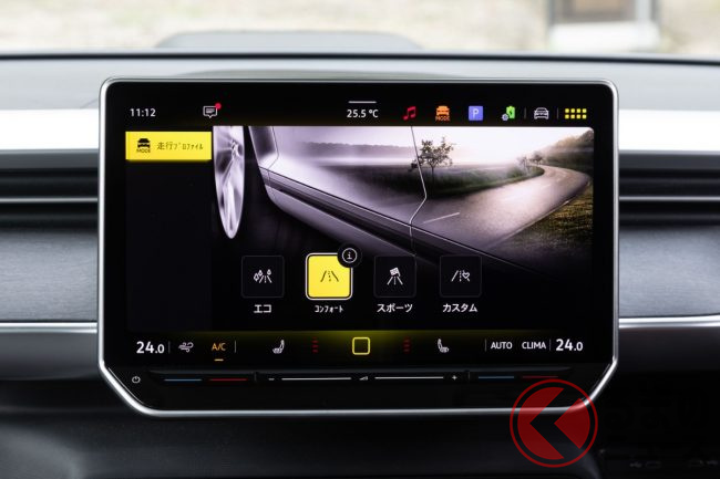そんなことを考えながら試乗を開始。大きな車体ながら、直線的なボディラインと大きなガラスエリアのおかげで車両感覚は掴みやすい印象です。しかし、狭い路地や駐車時はさすがに気を遣います。3mを超えるホイールベースの影響で最小回転半径は6m超え、しかも後輪操舵も備わらないため内輪差が大きいのです。