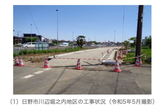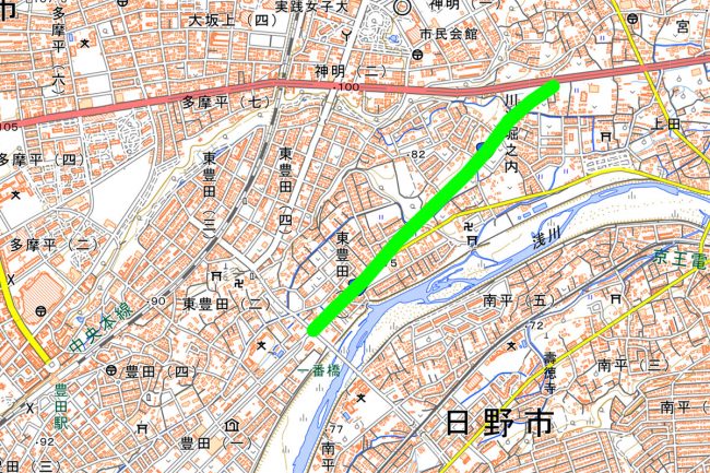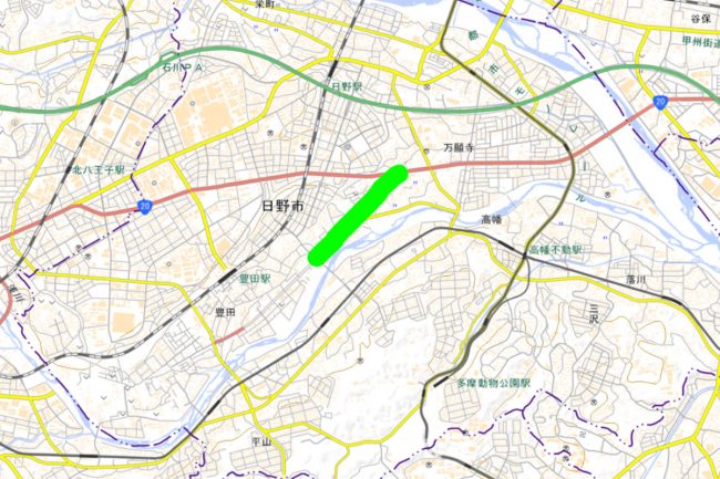 その先もすでに用地は確保されており、一部は暫定的に市道として解放。国立インター入口から浅川に沿って、JR豊田駅の南側エリアのアクセスが向上します。