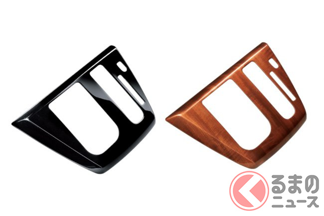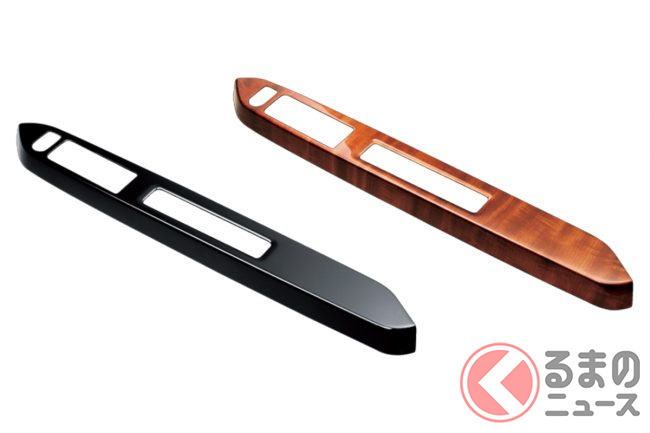 センタークラスターパネル、スイッチベースパネル、リアドアハンドルパネルの3点で構成され、ウッド調デザインを選べば昭和の高級車を彷彿とさせる落ち着きある空間に。