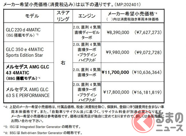 なお、GLC 63 S E PERFORMANCEの希望小売価格(消費税込み)は1840万円です。