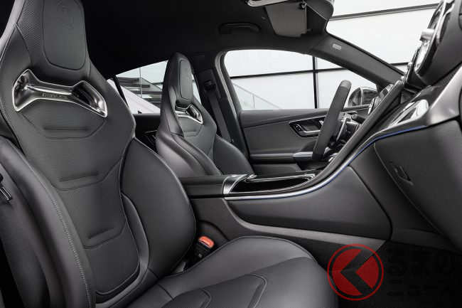 インテリアでは、スポーツ走行時でも安定した姿勢の維持をサポートし、ロングドライブでも疲れにくい快適性を備えるAMG専用スポーツシートを装備。