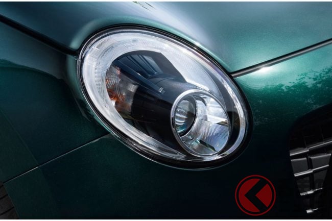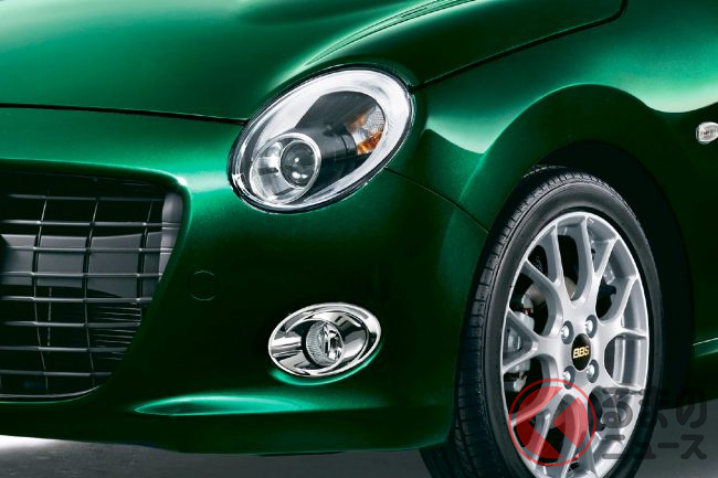 コペン GRスポーツは、GRスポーツモデルらしいアグレッシブで精悍なデザインに加え、専用BBS製アルミホイールやブラック加飾のヘッドライトを採用。