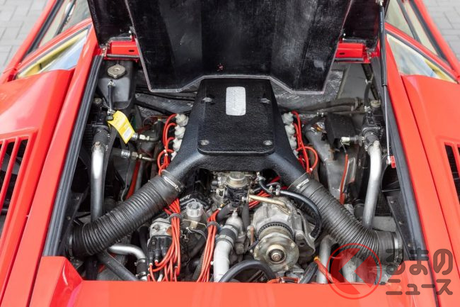 パワーユニットは「LP5000 QV」と同様で、5.2リッターのV型12気筒自然吸気エンジンを搭載します。最高出力は455馬力を発揮し、6基のウェーバー製キャブレターの組み合わせにより、最高速度は298km/hに達します。