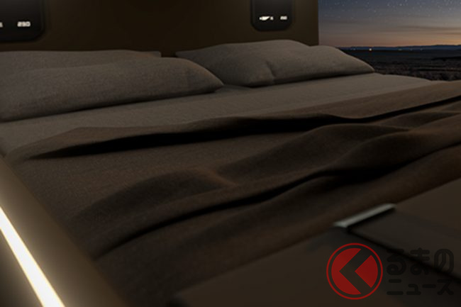 ステアリングやダッシュボードなど従来の運転席中心の装備は省略されている可能性が高く、自動運転を意識した「乗員中心」の空間設計が特徴です。