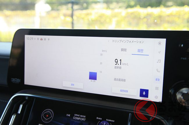 ハイブリッドシステムの採用で、燃費性能は通常のLX600がWLTCモードで8.0km/Lに対し、9.3km/Lをマーク。