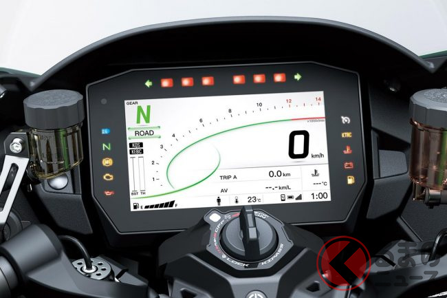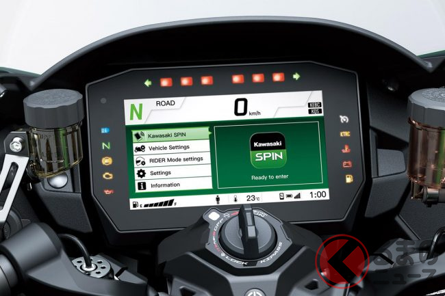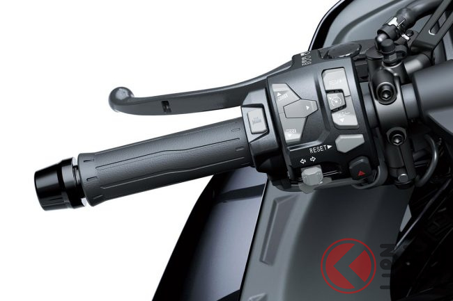 また、上位グレードの「SE」モデルでは、路面状況やライディングスタイルに応じて瞬時に減衰力を最適化するKECS(カワサキエレクトロニックコントロールサスペンション)を採用し、より快適な乗り心地のしなやかさと、スポーツライディングの容易さを両立。ショーワのスカイフック式EERA(電子制御ライドアジャスト)テクノロジーによって、タイヤの接地感が向上し、コーナリング時の安定性が格段に高められています。