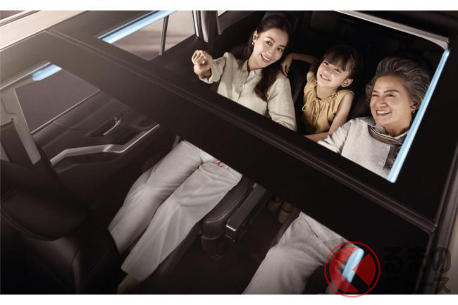 インテリアには、オットマン付きの独立型セカンドシートやパノラミックルーフを採用し、高級感と開放感を両立。