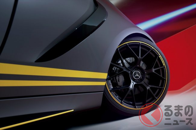 さらにAMGカーボンドアミラーやカーボンファイバースポイラーリップなどのカーボンパーツを採用し、軽量性とスポーティさを強調。足元にはリム部分をイエローで彩った20インチ鍛造AMGホイールを装備しました。