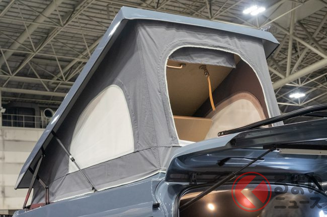 このルーフは就寝スペースだけではなく、床面を跳ね上げることで大人でも車内で立って着替えできるなど、扱いやすさが格段に向上しているそうです。