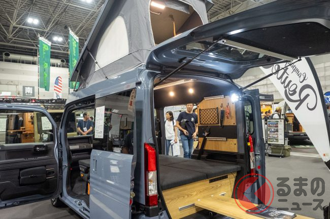 ルートシックスが、ホンダ「N-VAN FUN」をベースにした軽キャンピングカーを「名古屋キャンピングカーフェア2025 AUTUMN」で実車展示しました。どのようなクルマなのでしょうか。