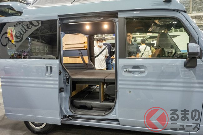 ホンダ「“2階建て”軽バン!?」実車公開! 全長3.4m級なのに「大人4人“寝られる”」N-VANがスゴい! ルートシックスのキャンパー「SEEK」に注目!