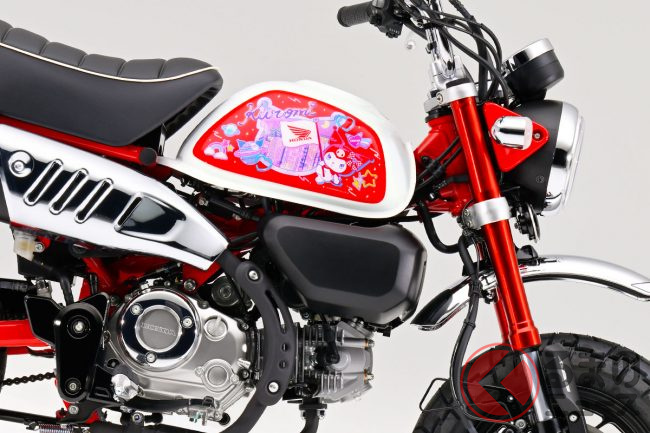 ホンダが原付二種「モンキー Kuromi仕様」発表! ホンダらしい「赤」を取り入れた“タンクサイドパネル”が超カッコイイ! 10月31日から期間限定で発売へ!