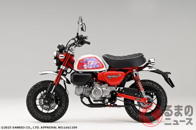 ホンダは2025年10月1日、原付二種(第二種原動機付自転車)のレジャーバイク「モンキー125」用の純正アクセサリーとして、サンリオの人気キャラクター「クロミ」をデザインした「“Honda×Kuromi”モンキー125用タンクサイドパネル(以下、タンクサイドパネル)」を受注期間限定で発売すると発表しました。