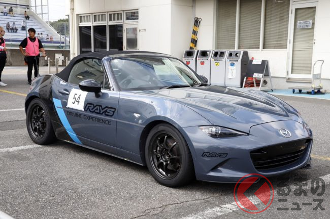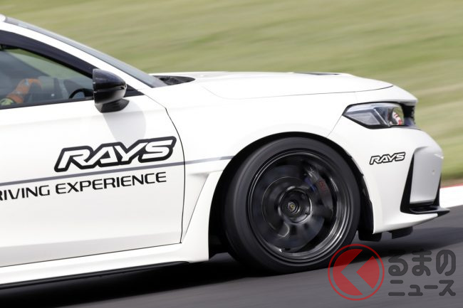 筑波サーキットにて2025年9月28日、チューニングカーの祭典とも言えるイベント「ハイパーミーティング2025」が開催されました。イベントに出展したレイズは、一般参加者に「純正ホイールと鍛造ホイールを履き比べて、クルマの性能がどう変わるかを体感してもらう」というスペシャルプログラムを実施しました。