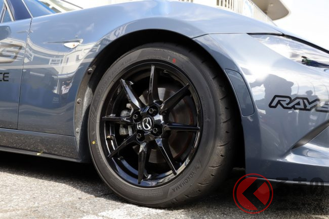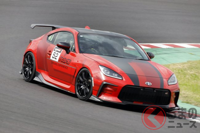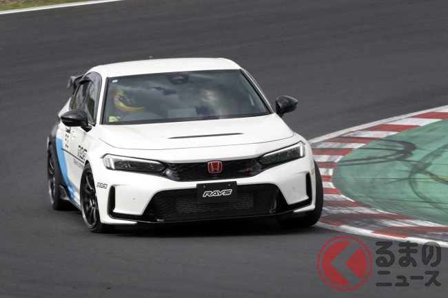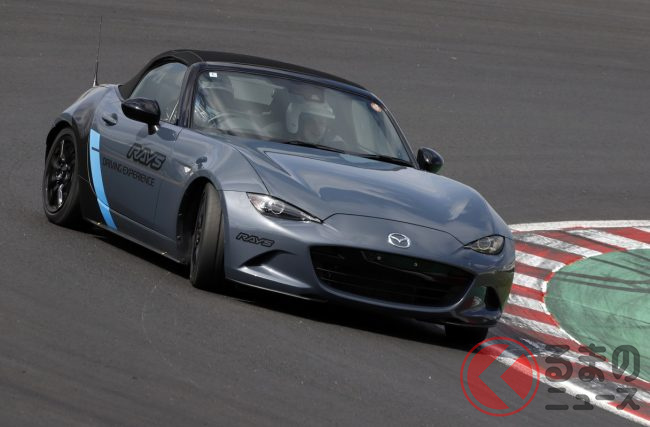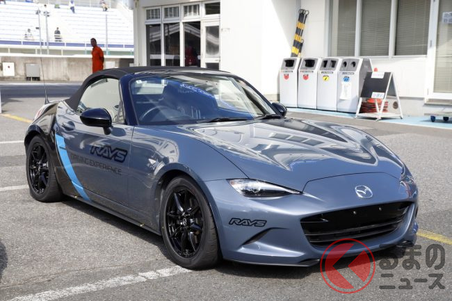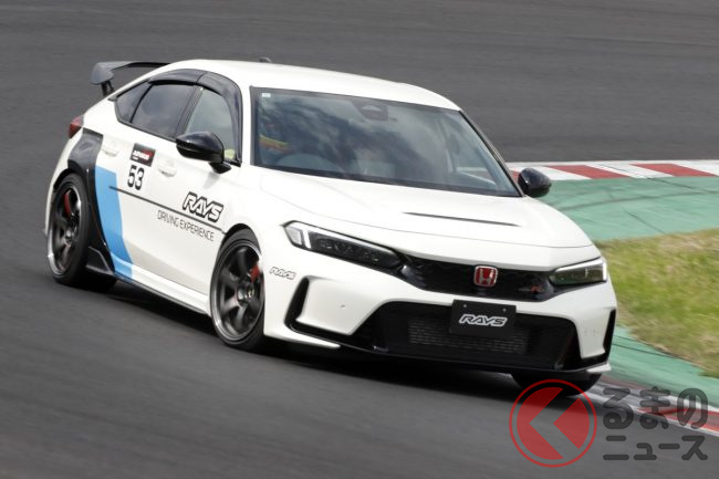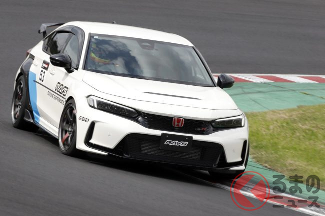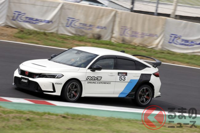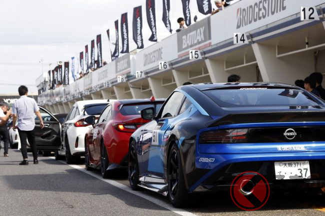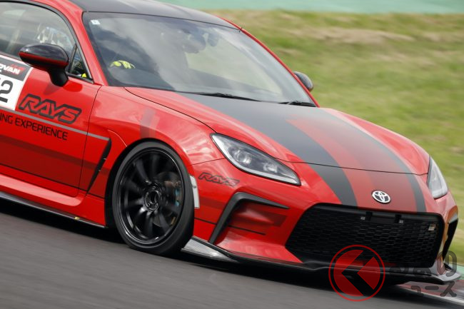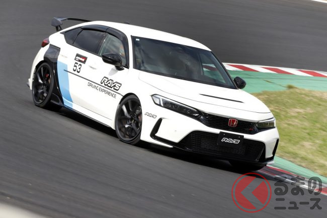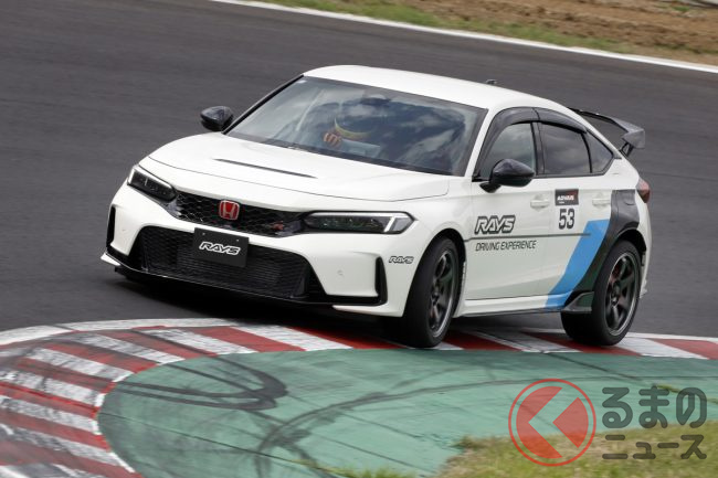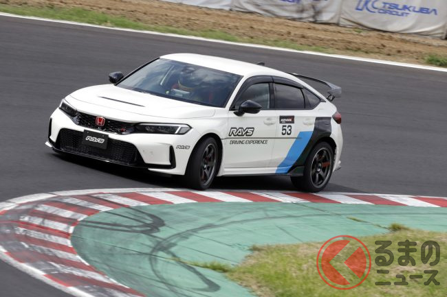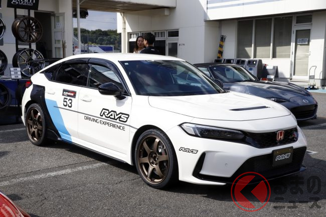 比較用に用意された車両は、トヨタ「GR86」、ホンダ「シビック タイプR(FL5)」、マツダ「ロードスター(ND)」で、これらを使い、純正ホイール状態とレイズ製鍛造ホイール状態とを乗り比べることができました。なお、日産「フェアレディZ(RZ34)」も用意され、レイズどうしでTE37とZE40の比較が行われました。