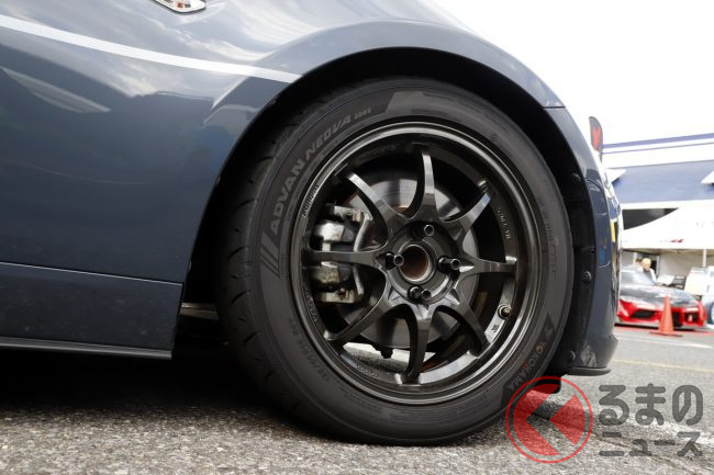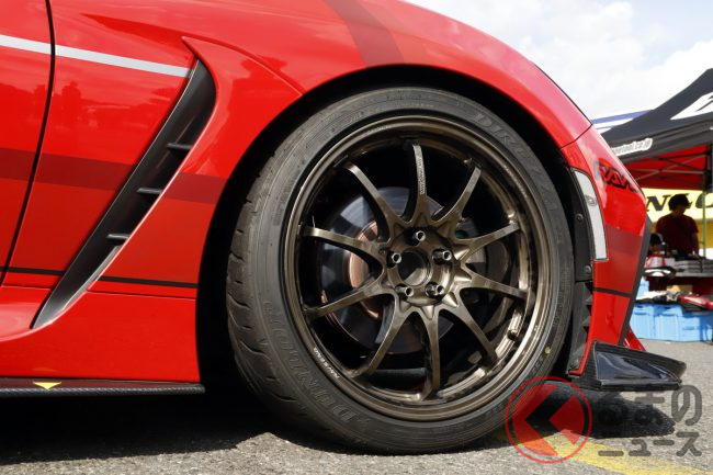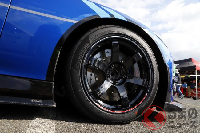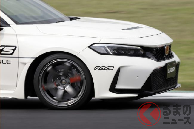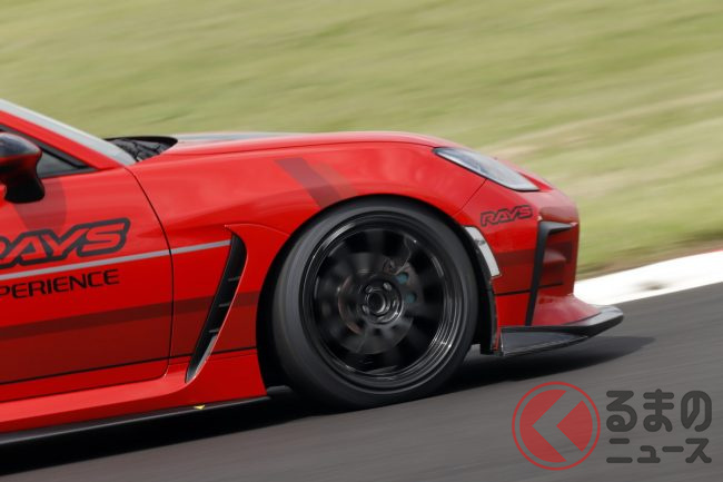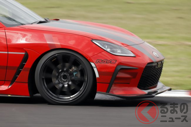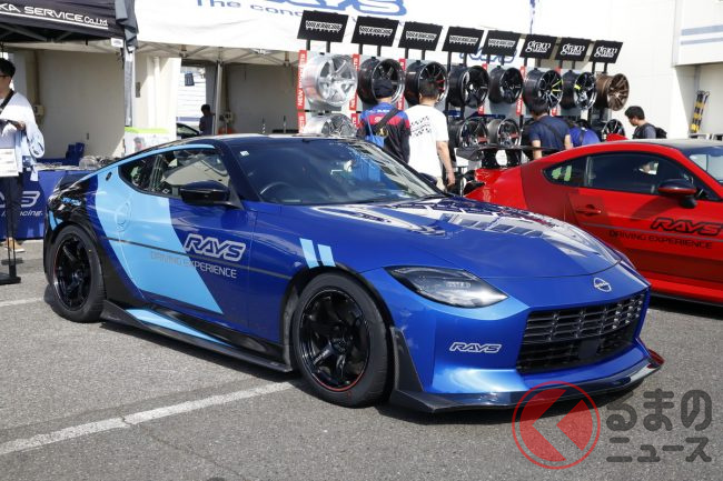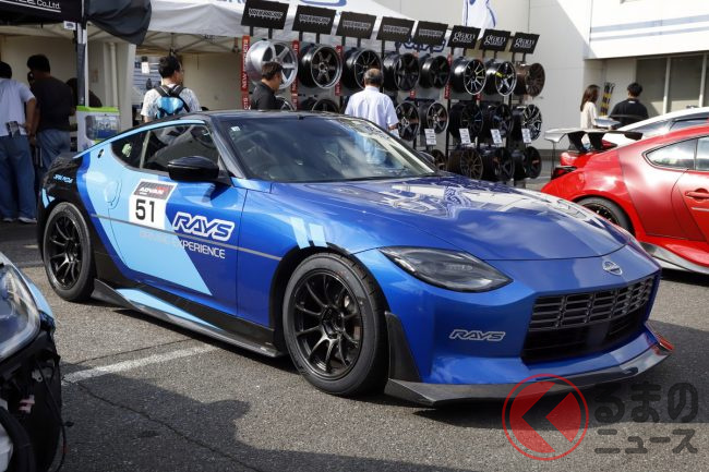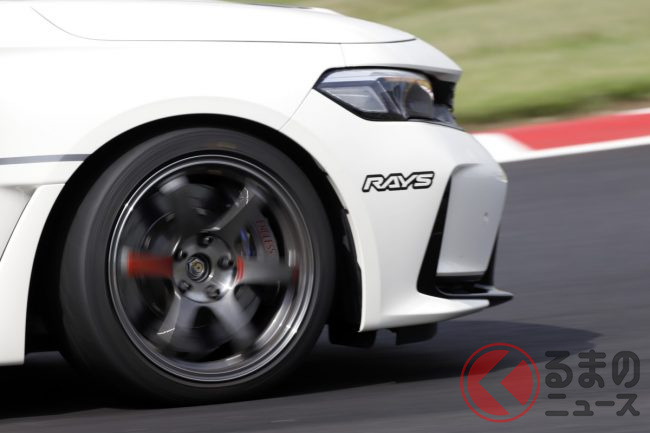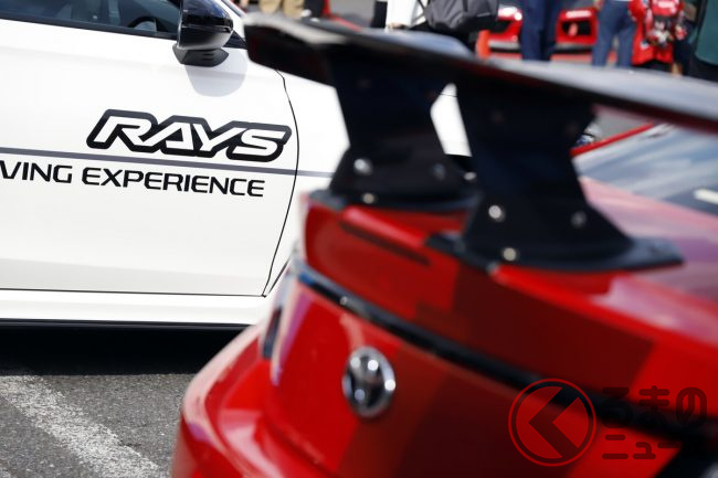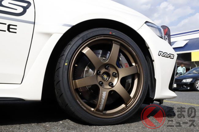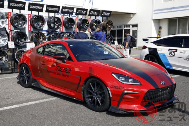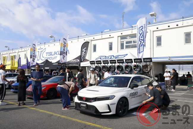 日本国内にとどまらず、世界で高い評価を得ているのがホイールメーカーの「RAYS」(レイズ)です。2025年9月28日、筑波サーキット(茨城県下妻市)でチューニングカーが集うイベント「ハイパーミーティング2025」が開催され、レイズは大きなブースを構えて大量のホイールを展示。ひときわ注目を集めていました。