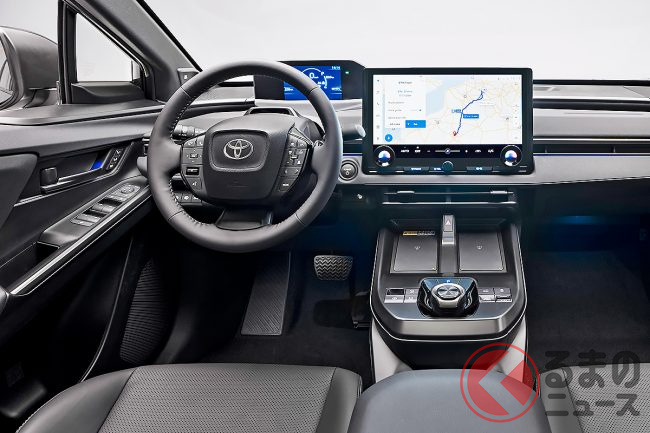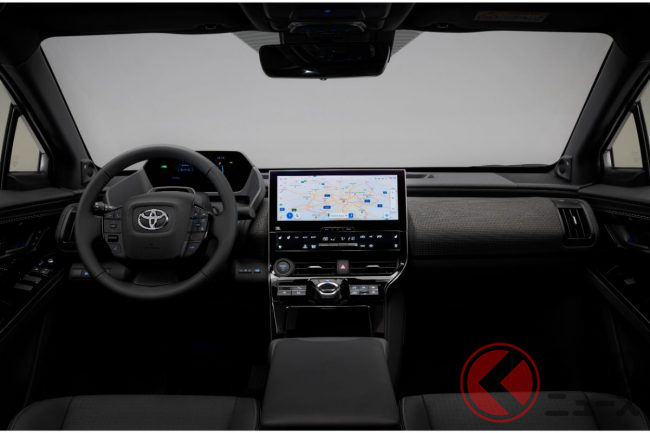 トヨタ新型「“5人乗り”ミドルクラスSUV」まもなく発売! 全長4.6mサイズにスッキリ内装×精悍さ増した「一文字顔」に大幅刷新! 新型「bZ4X」どう変わった?