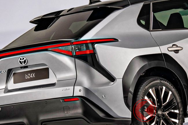 bZ4Xのエクステリアデザインは、最近のトヨタの主流デザインとなっているハンマーヘッドを初採用したことで知られます。