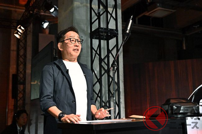 レクサスは2025年10月1日、新型「ES」を日本初公開しました。その公開イベント「SENSES ―五感で感じるLEXUS体験」では、視覚のコンテンツとしてプロジェクトチーフデザイナーの熊井弥彦氏がスケッチを交えながら、デザイン開発の背景を語りました。