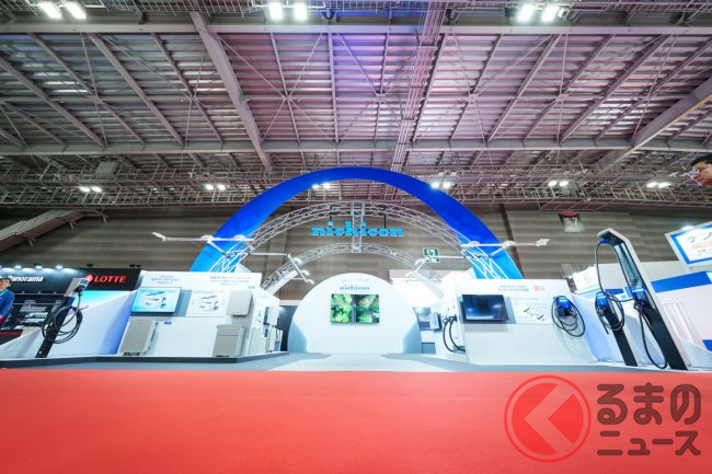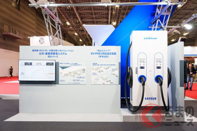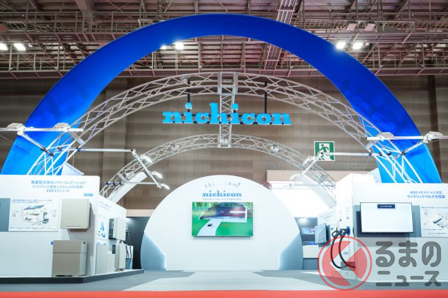 家庭用蓄電システムなどを手がけるニチコン(京都市)が、東京ビッグサイト(東京都江東区)で2025年10月30日~11月9日(一般公開は10月31日から)に開催される「ジャパンモビリティショー2025」に出展します。開幕前日の29日には、ブースがメディア向けに公開され、EVと家庭をつなぐV2H機器やEVの急速充電器などがお披露目されました。