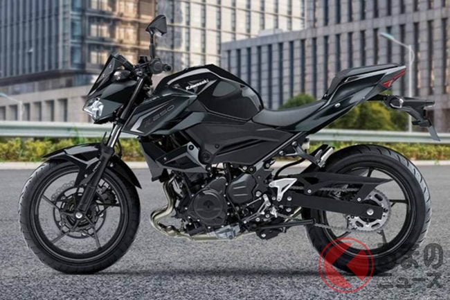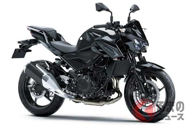 同モデルは、「Z」シリーズに共通する「Sugomi」デザインを取り入れた軽二輪ネイキッドモデルで、搭載されている水冷並列2気筒の248ccエンジンは、12500rpmで最高出力26kW(35PS)、10500rpmで最大トルク22N・m(2.2kgf・m)を発揮します。