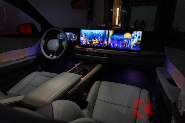 フロントには大型インフォテインメントディスプレイや12.3インチ液晶メーターを備え、スイッチ類には世界初となる「Responsive Hidden Switches(レスポンシブヒドゥンスイッチ)」を採用。