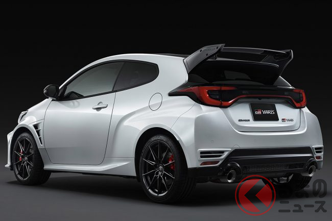 新車約972万円! トヨタ「凄い“3ドアハッチバック”」発表! 特大“可変式”リアスポイラー&専用エアロの迫力ヤバい!「GRヤリス エアロパフォーマンス」英国で登場!