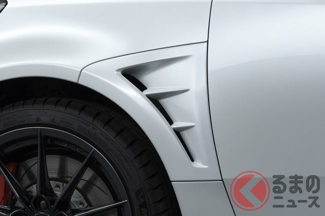フロントフェンダー後部には、新しいダクトが設けられました。これはフロントホイールハウス内に溜まった空気を後方へ排出し、ブレーキング時のステアリングフィールやコーナー進入時の操縦安定性を向上させます。