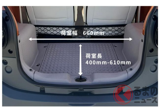 車内は2名が乗車可能。座席後部には幅660mmの荷室も用意されています。