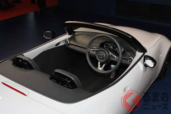 なかでもユニークなモデルとして来場者を楽しませたのが、マツダが出展した「ロードスター」です。
