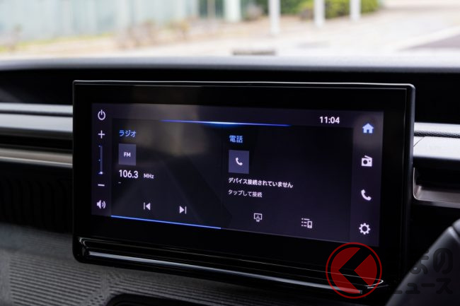 インテリアも、直線基調のインストルメントパネル周りが特長です。ステアリングの上から見る正面のモニターは、視線移動が少ないヘッドアップディスプレイのような役割を果たします。中央には、10インチのタッチスクリーンを配置。Apple CarPlayとAndroid Autoにも対応しています。