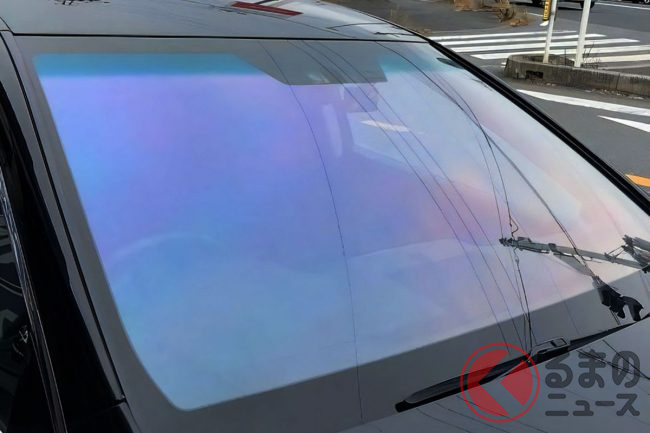 虹みたいにキラキラ光る「車のフロントガラス」何がいい? 青や紫に輝く「オーロラフィルム」車検は大丈夫? “人気ドレスアップ”注意すべき点とは!