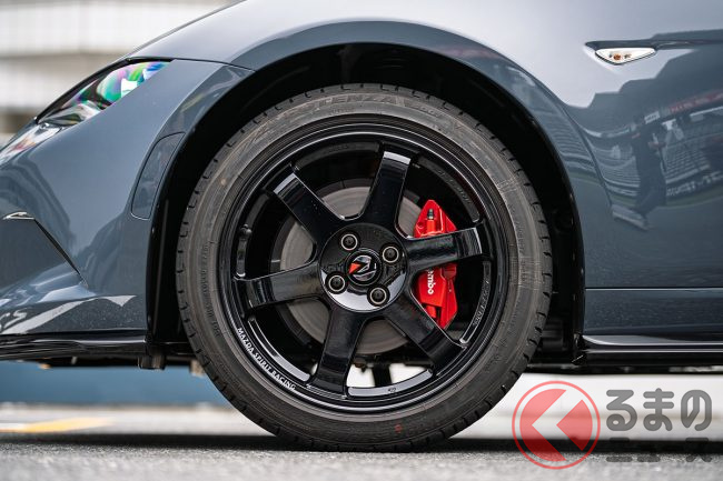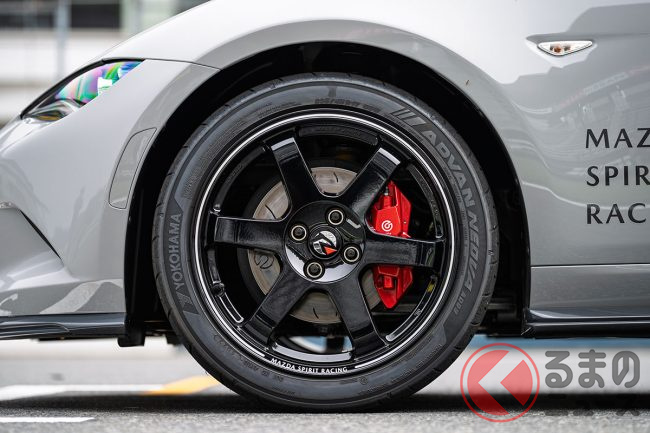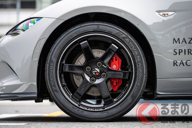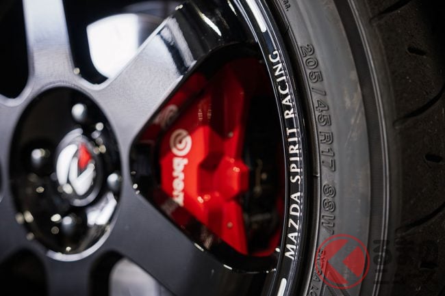 また、ホイールのスポークが短く見えるよう工夫されたデザインや、「MAZDA SPIRIT RACING」の刻印が施されており、特別感を演出しています。