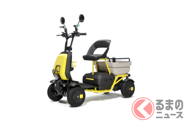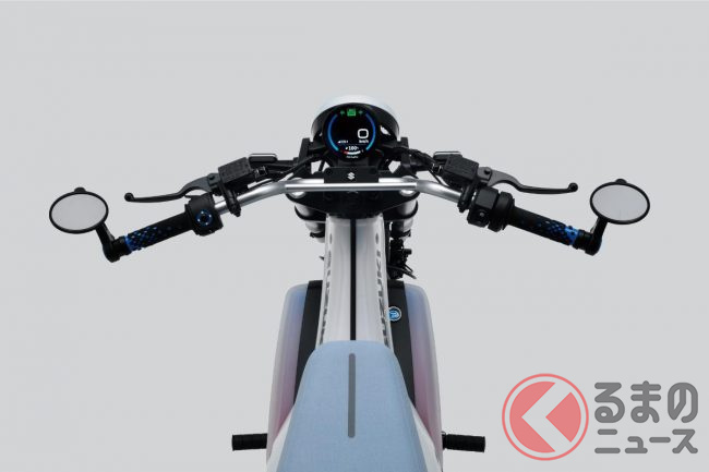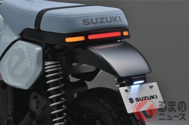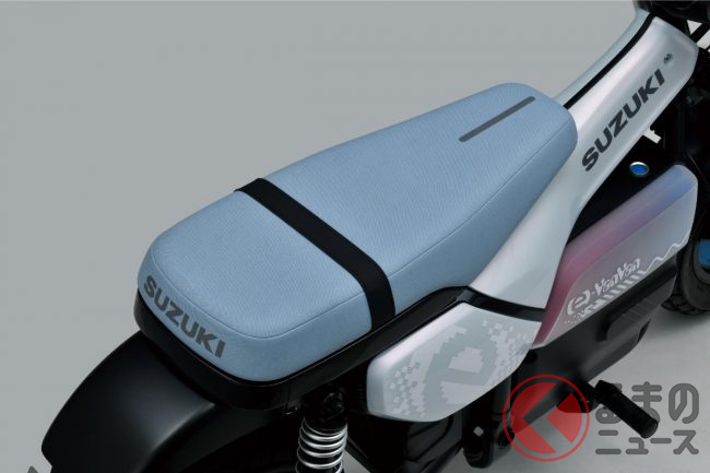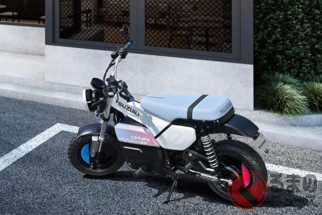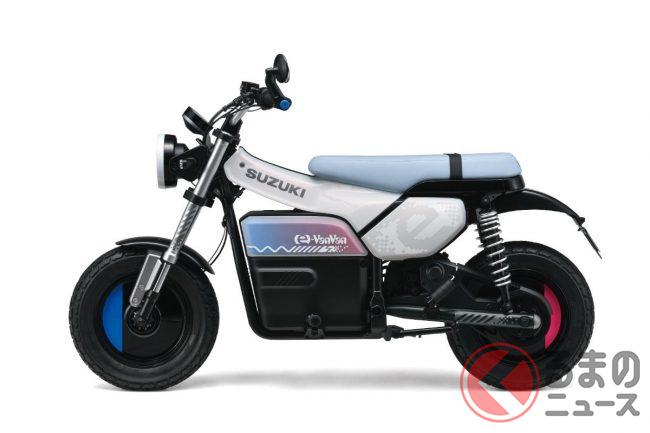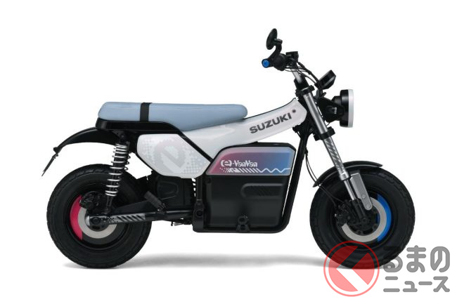 1970年代より人気を博したスズキのレジャーバイク「VanVan」をモチーフとし、独創的なスタイリングとデジタルテーマのユニークなカラー&グラフィックで先進性を表現しました。ファンバイクとしてEVの新たな楽しみ方をご提案します。サイズは全長1810mm×全幅825mm×全高1050mm、車両区分は原付二種相当です。