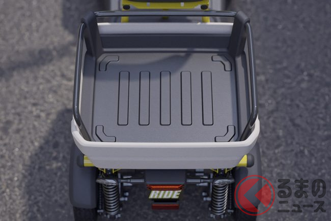 スズライドではシートを兼ねたボックスが備わり、そこに物を入れることができたのですが、スズライド2はラゲッジスペースがシート後方に移動しており、買い物かごも載せられるなど利便性が向上します。