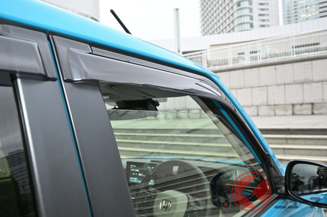 ホンダの世界初「すごいドアバイザー」に注目! 新型「軽ワゴン」で採用の“超・画期的”アイテムは「これまでにないバイザー」に大進化! 新型「N-ONE e:」に設定の斬新用品とは?