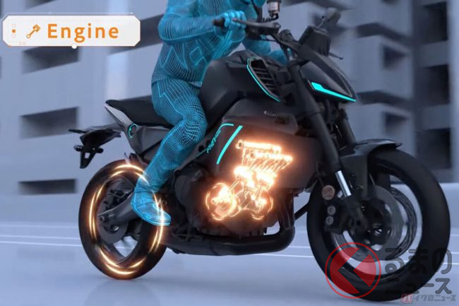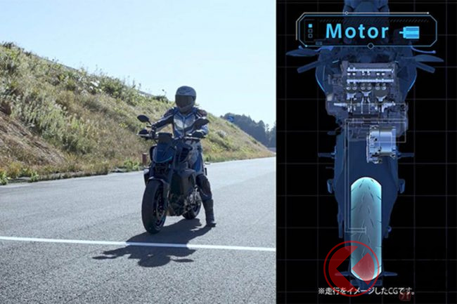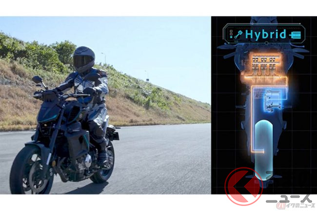 ヤマハによれば、この車両は、エンジンのサウンドやフィーリングに魅力を感じつつも、環境に配慮した電気自動車の航続距離や充電設備に不安を抱くユーザー向けに開発されたものです。市街地では電動走行、高速道路や長距離移動の際には内燃機関やモーターアシストによるハイブリッド走行というように、状況に応じて走行システムを変更することが可能です。