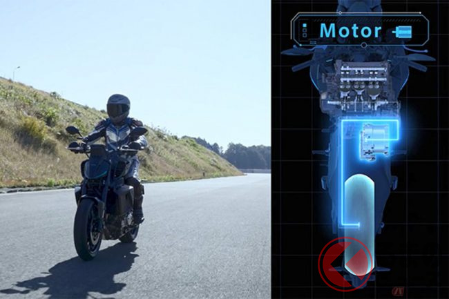 ヤマハの公式 YouTube チャンネルでは、同モデルの走行シーンが公開されており、エンジンとモーターの駆動を切り替える機能を持つことが確認できます。