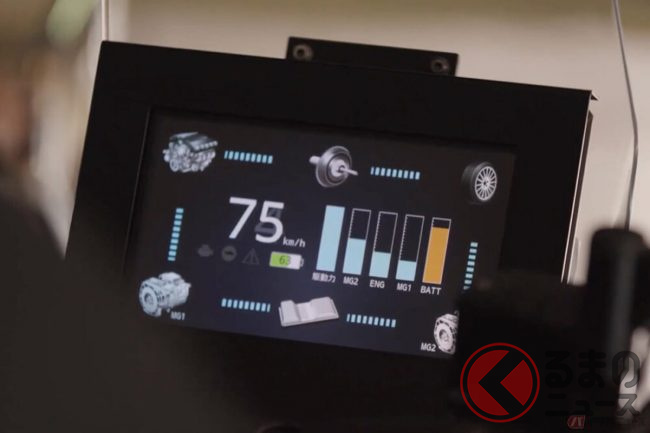 同モデルはエンジンと2基のモーターによって構成されています。モーターの一つは車輪を駆動するためのもので、もう一つはエンジンと直結されており発電を行う仕組みになっています。