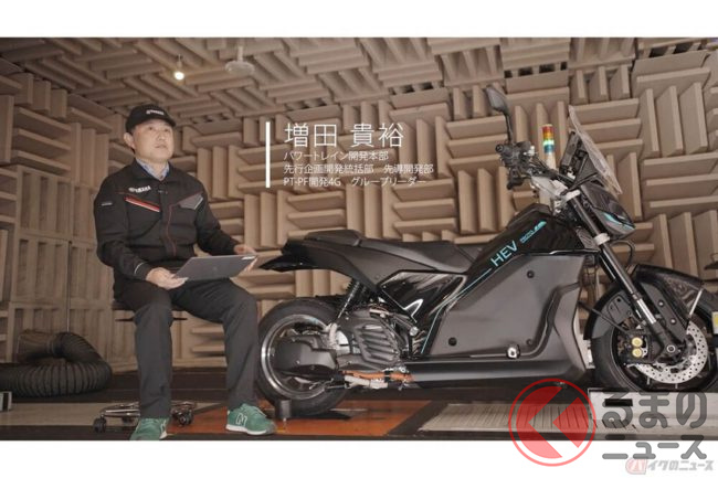 ヤマハの「新シリーズパラレルハイブリッドバイク」登場! スクータータイプの「PROTO HEV」をJMS2025で公開 どんなシステムが搭載されている?