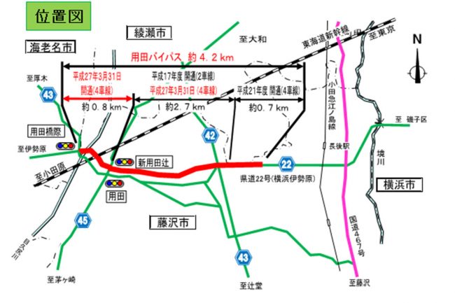 神奈川県は、県道22号線の「用田バイパス」が4車線開通した効果を発表しました。