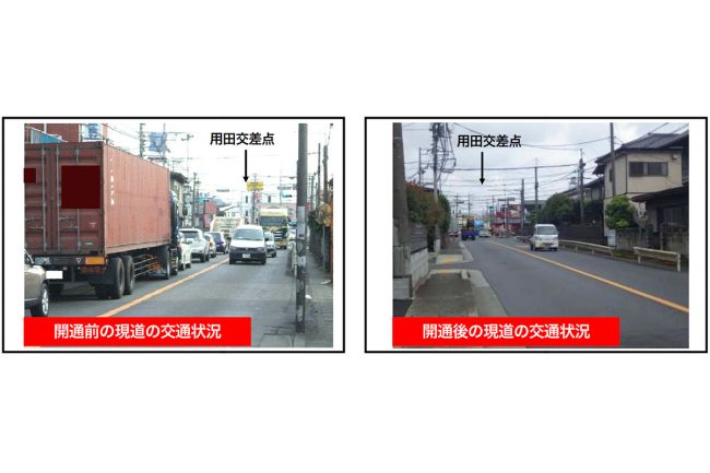 さらに、用田橋際交差点では最大渋滞長が約70%も減少。用田交差点や新用田辻交差点ではほぼ渋滞が消滅するなど、大きな効果が見られたといいます。