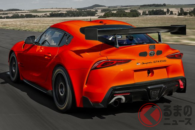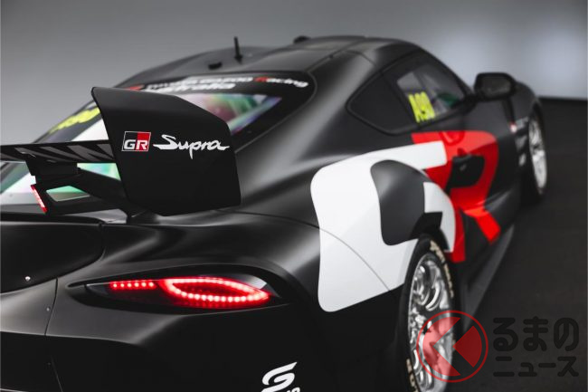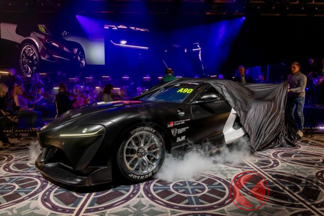 トヨタ新「GRスープラ“スーパーカー”」初公開! レクサスの「5リッターV8」搭載×迫力リアウィング採用! 2026年参戦のスーパーマシンが豪州のレースイベントに登場