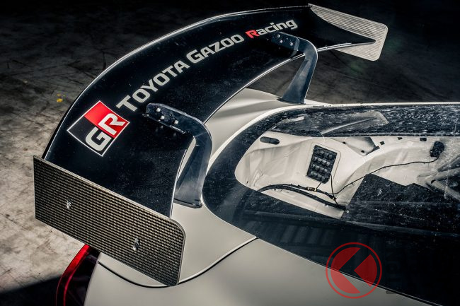 エクステリアは量産型スープラのデザインをベースにしつつ、極端にワイド化されたフェンダー、専用のエアインテーク、そして巨大なリアウィングを装備。空力特性を徹底的に追求したデザインは、長いストレートと高低差の激しいマウントパノラマ・サーキットに最適化されています。