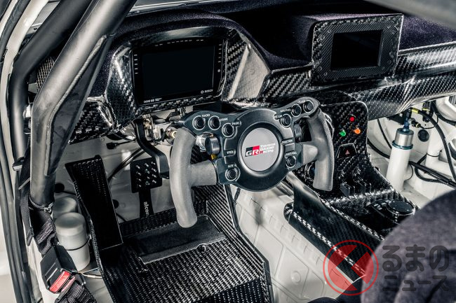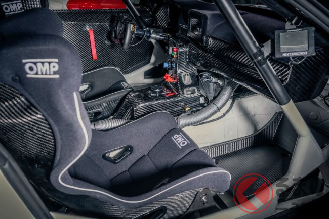 内装は完全なレーシング仕様で、バケットシートや多点式ロールケージ、ディスプレイ型メーターを備えるなど、ドライバーの安全性と集中力を最優先に設計。不要な快適装備をすべて排除し、競技専用マシンとしての本質を追求しています。