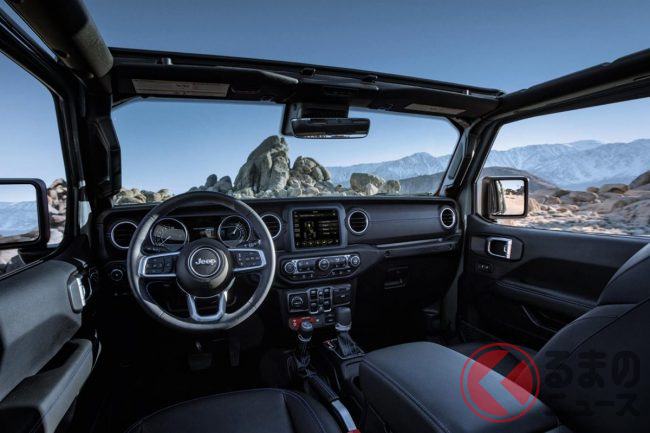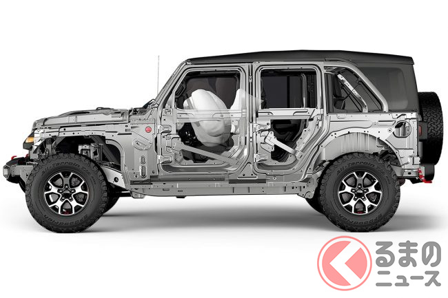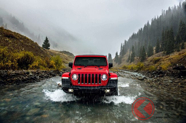 写る車両は、ジープブランドを代表する本格オフロードSUV「ラングラー」と見られます。