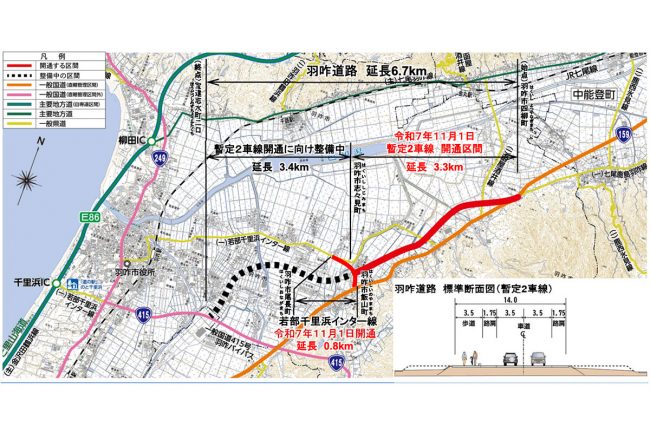 金沢河川国道事務所は、国道159号の「羽咋道路」が2025年11月1日に開通すると発表しました。